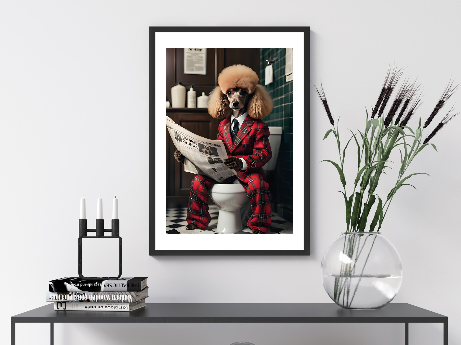 Poodle Tartan Jacket on Toilet