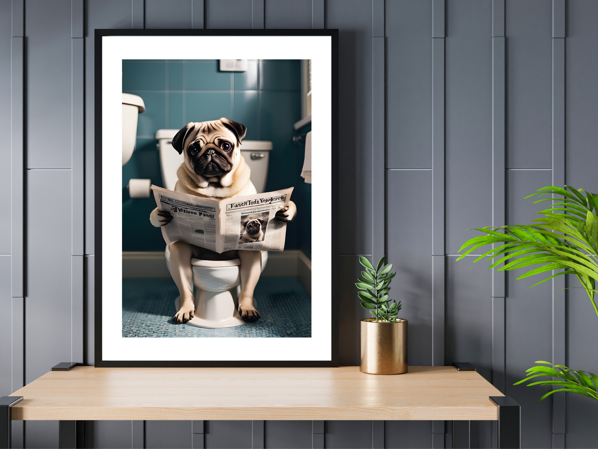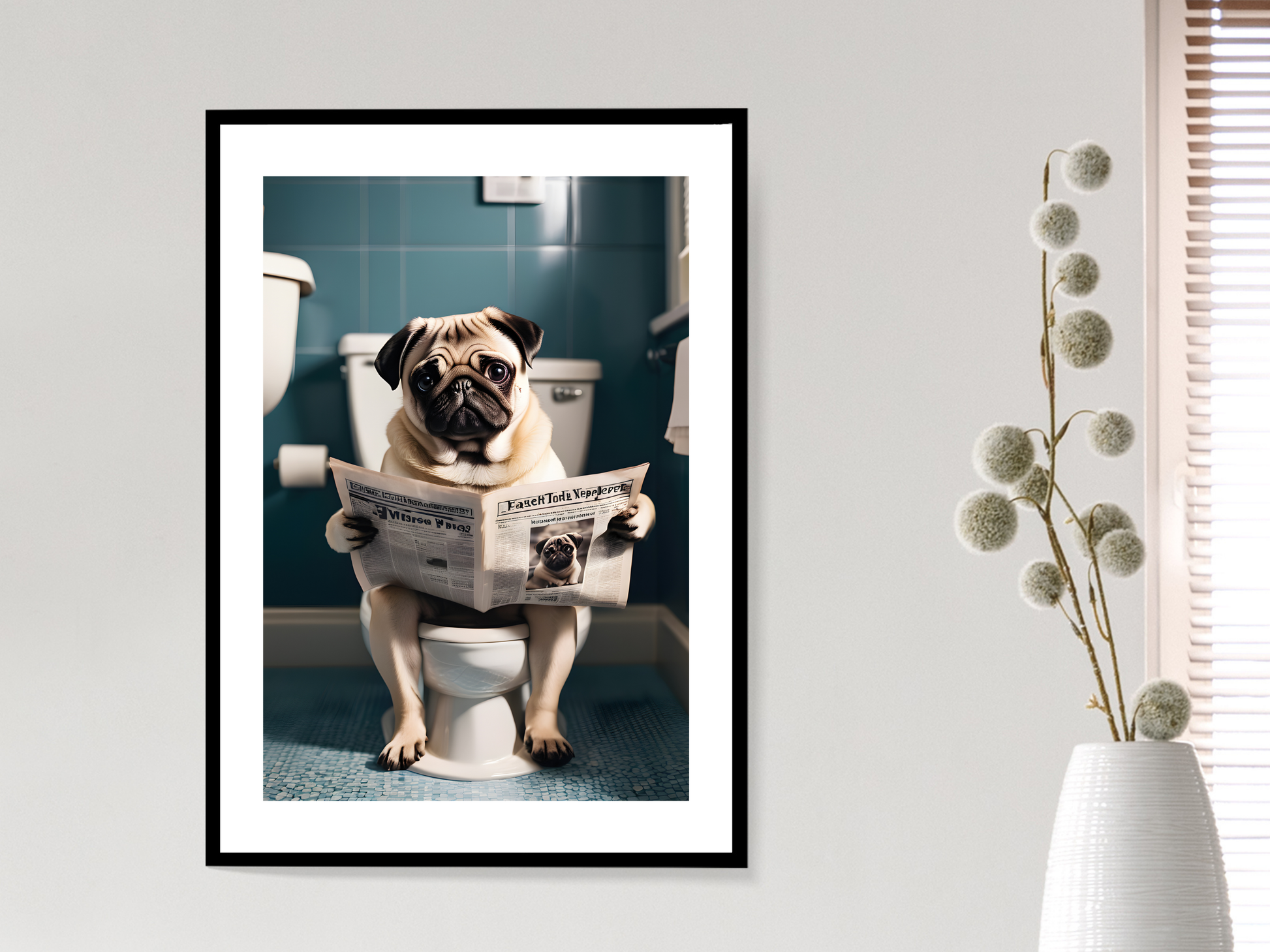 Pug on Toilet